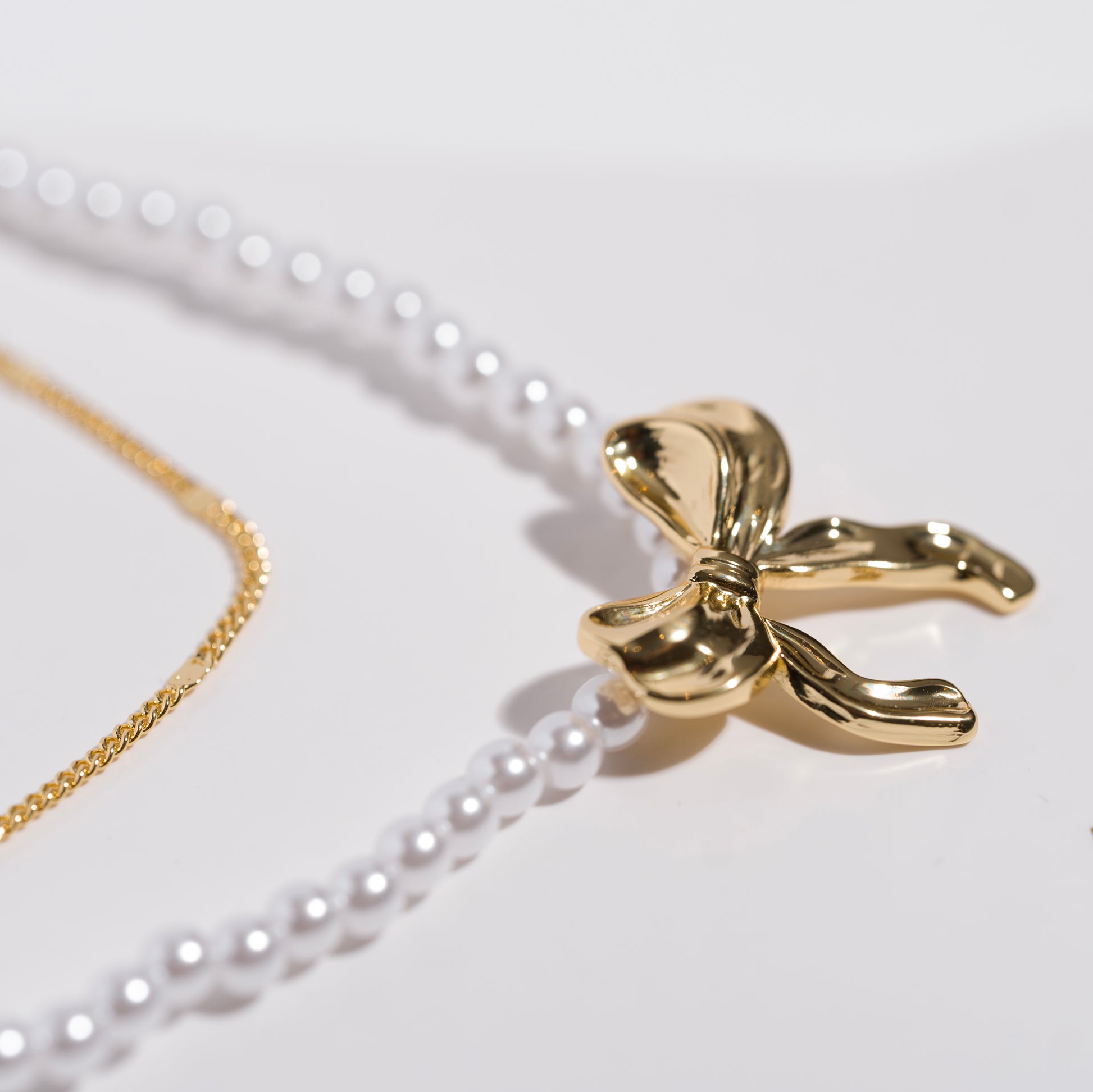 The Harmony necklace set blends elegance and balance in a timeless, feminine design. Made from water and sweat proof 18k gold-coated stainless steel, this two-piece set is perfect for layering or wearing solo. The top necklace (adjustable 14–16 inches) features a beautifully detailed gold chain, while the bottom necklace (adjustable 16–18 inches) is strung with delicate pearls and finished with a charming gold bow. A graceful reminder that true beauty lies in harmonious simplicity.