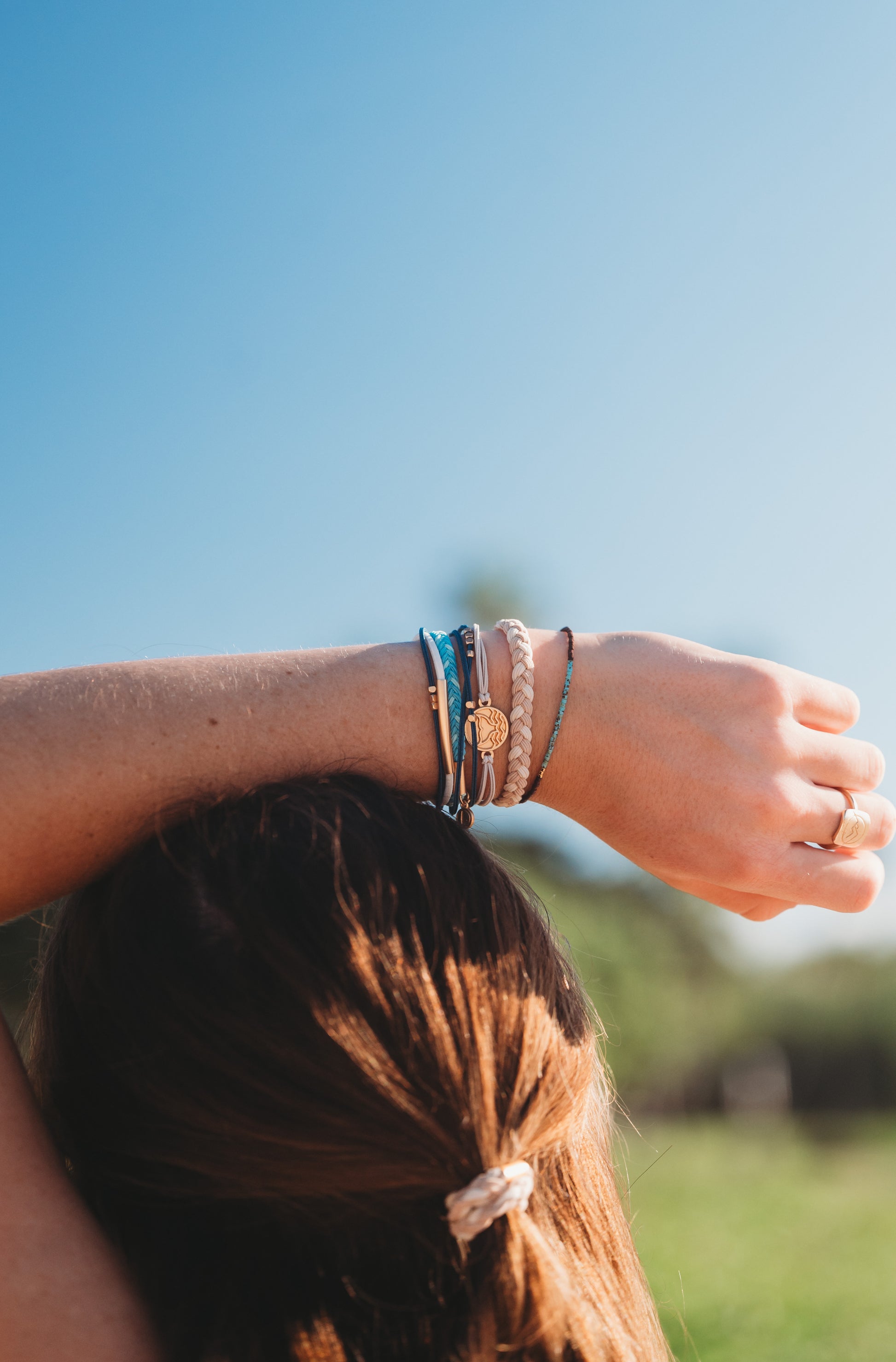 Our PROTECT set includes 5 bracelets that double as hair ties bringing all the ocean feels with blues, teal, and sandy neutrals. The gold charm shows a whale tale reminding everyone to protect the beautiful creatures of the sea. A portion of proceeds from this pack will be donated to the WILDCOAST conservation projects.