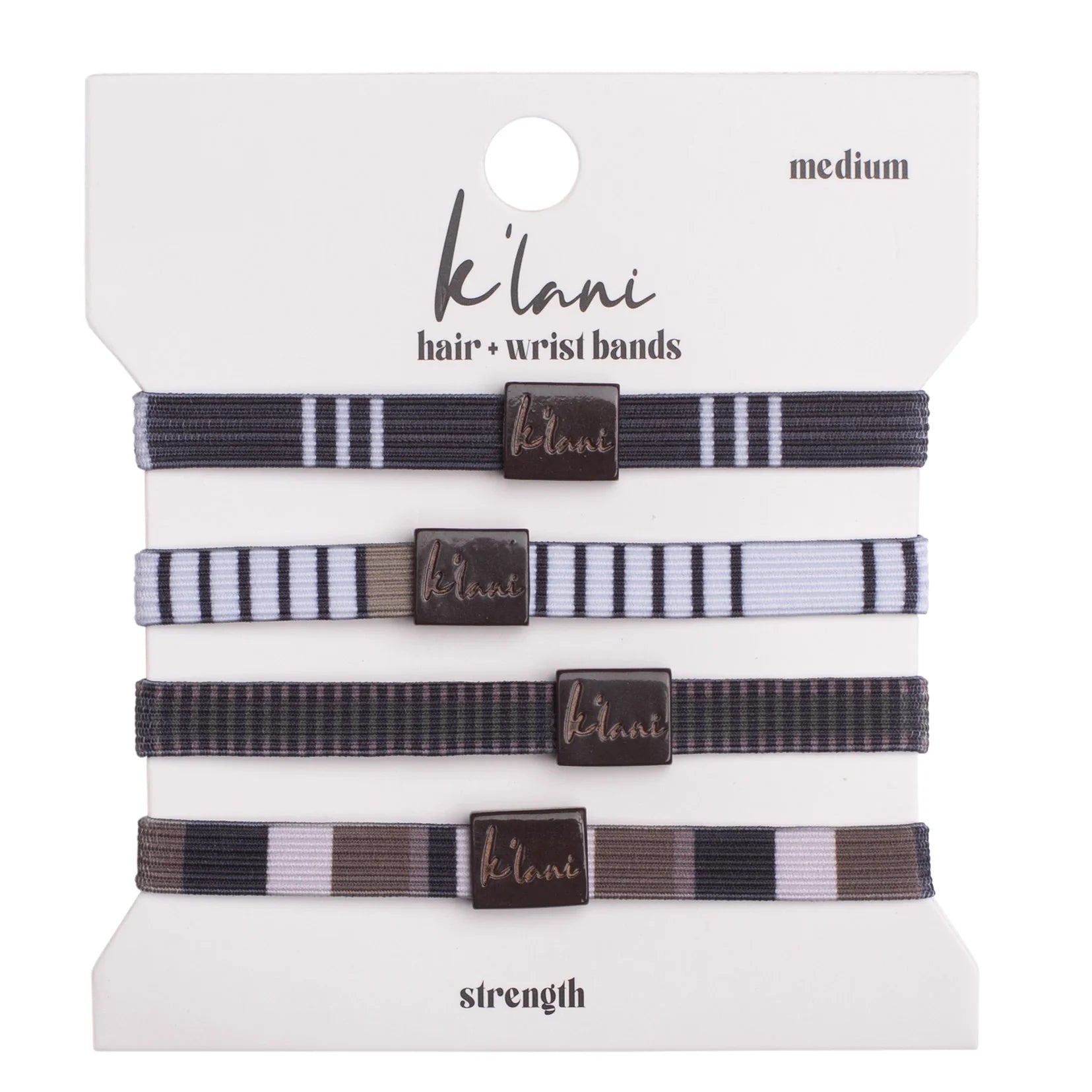 Our strength set includes four hair + wristbands that hold all hair types with ease. Each band has a stripe in contrasting neutrals that makes it the perfect understated accessory for men and women. The stone colored set reminds us that we can be our own rock, and are strong enough to conquer our fears.